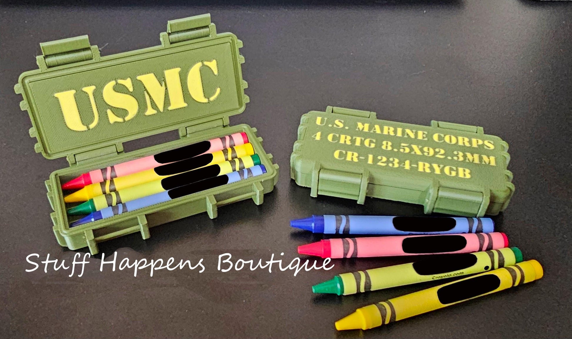 Crayon USMC Ration Box – Hidden Lid Tribute for the Proud Few - 3D Printed Box w/ Crayons